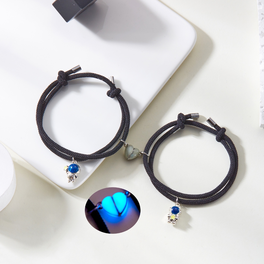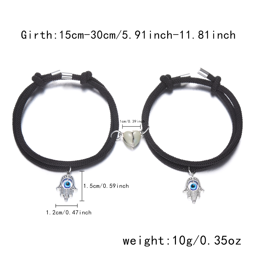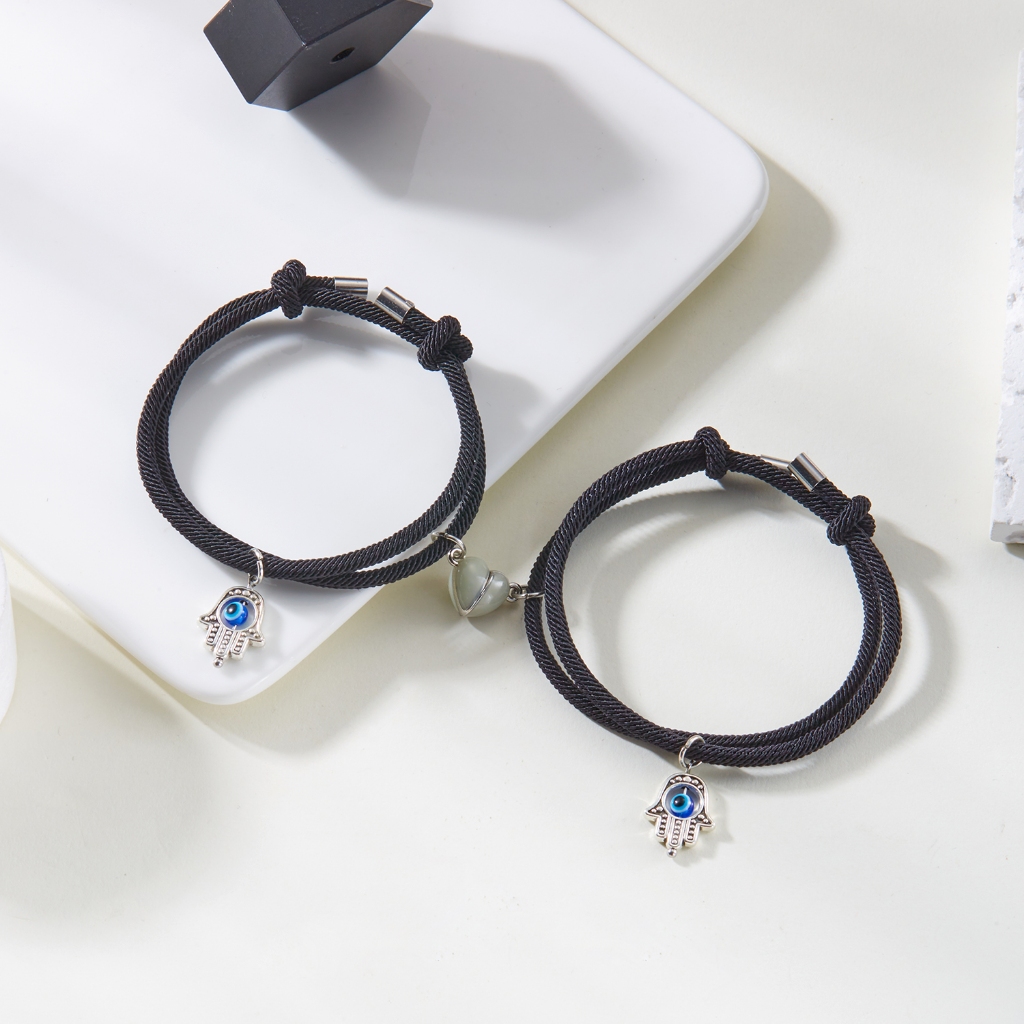 Gmai 2 ชิ้น Evil Eye ปาล์มสร้อยข้อมือคู่ Luminous Heart แม่เหล็กปรับสายรัดข้อมือของขวัญอุปกรณ์เสริม