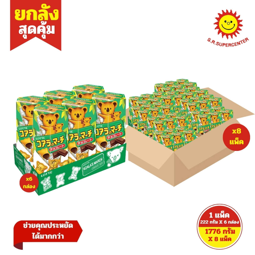 [ ยกลัง ] โคอะลา มาร์ช ขนมบิสกิตสอดไส้ 33-37 ก. แพ็ค 6 กล่อง (ยกลัง 8 แพ็ค)