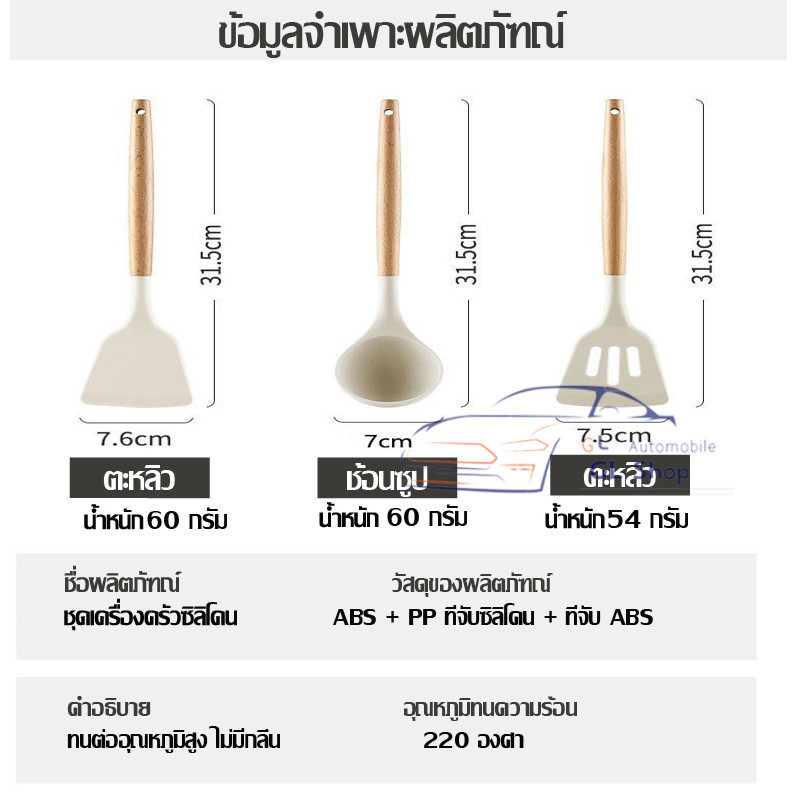 ชุด3ชิ้น เครื่องครัวซิลิโคน ทนความร้อน ประหยัดที่จัดเก็บง่าย ทำความสะอาดได้ง่าย ทนความร้อน ชุดครัว