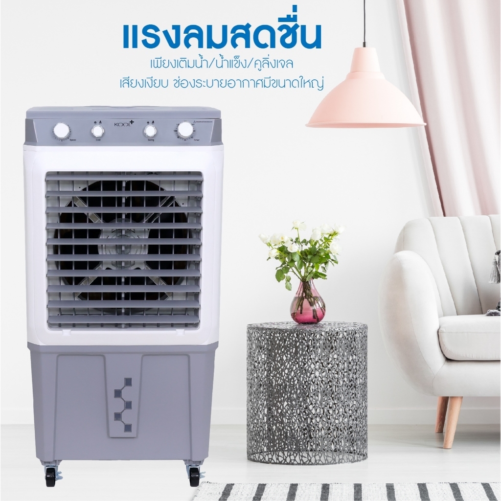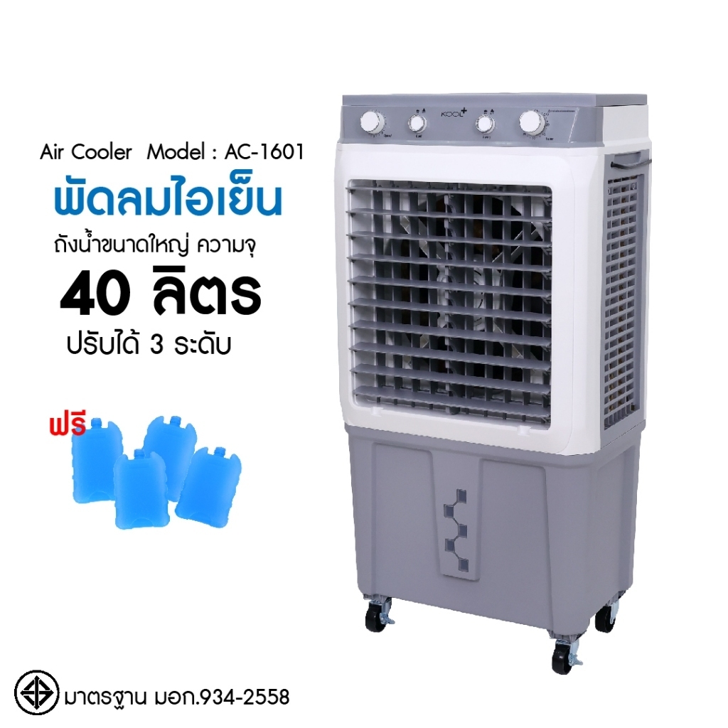 Kool+ พัดลมไอเย็น รุ่น AC-1601 รุ่น 2025 (สีขาว-เทา) ความจุ 40 ลิตร แถมฟรี cooling pack 4 ชิ้น
