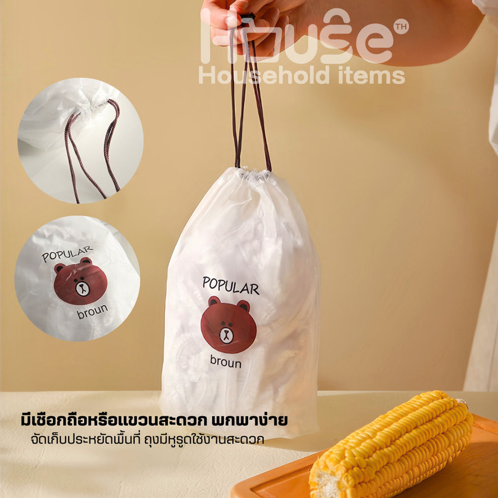 ฟิล์มห่ออาหารหมีบราวน์(100ชิ้น/แพ็ค) ถุงครอบถนอมอาหาร ชั้นฟิล์มห่ออาหาร แรปถนอมอาหาร ฟิล์มยืด รักษาความสดใหม่ของอาหาร
