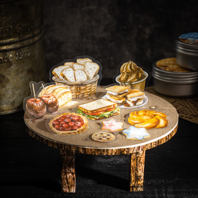 กล่องอลูมิเนียม 100 ชิ้น/ถุง พร้อมสติ๊กเกอร์ ขนมปังโซดา คุกกี้ รูปแบบขนม สติ๊กเกอร์ขนาดเล็ก สร้างสรรค์ DIY การ์ดอวยพร ถ้วยของขวัญ กล่องเก็บของ แผ่นบันทึก สติ๊กเกอร์ตกแต่ง