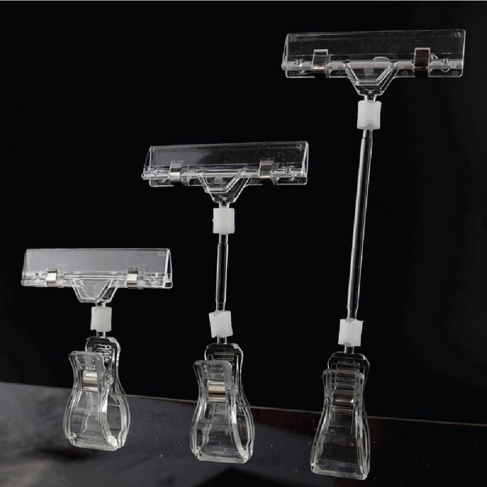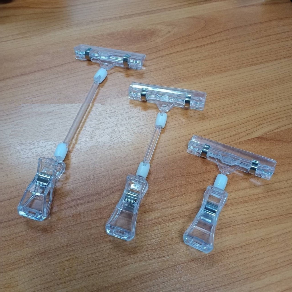 ที่หนีบป้ายราคาใส ปรับหมุนได้ 360° สำหรับร้านค้า ตลาดนัด | แข็งแรง ใช้ง่าย