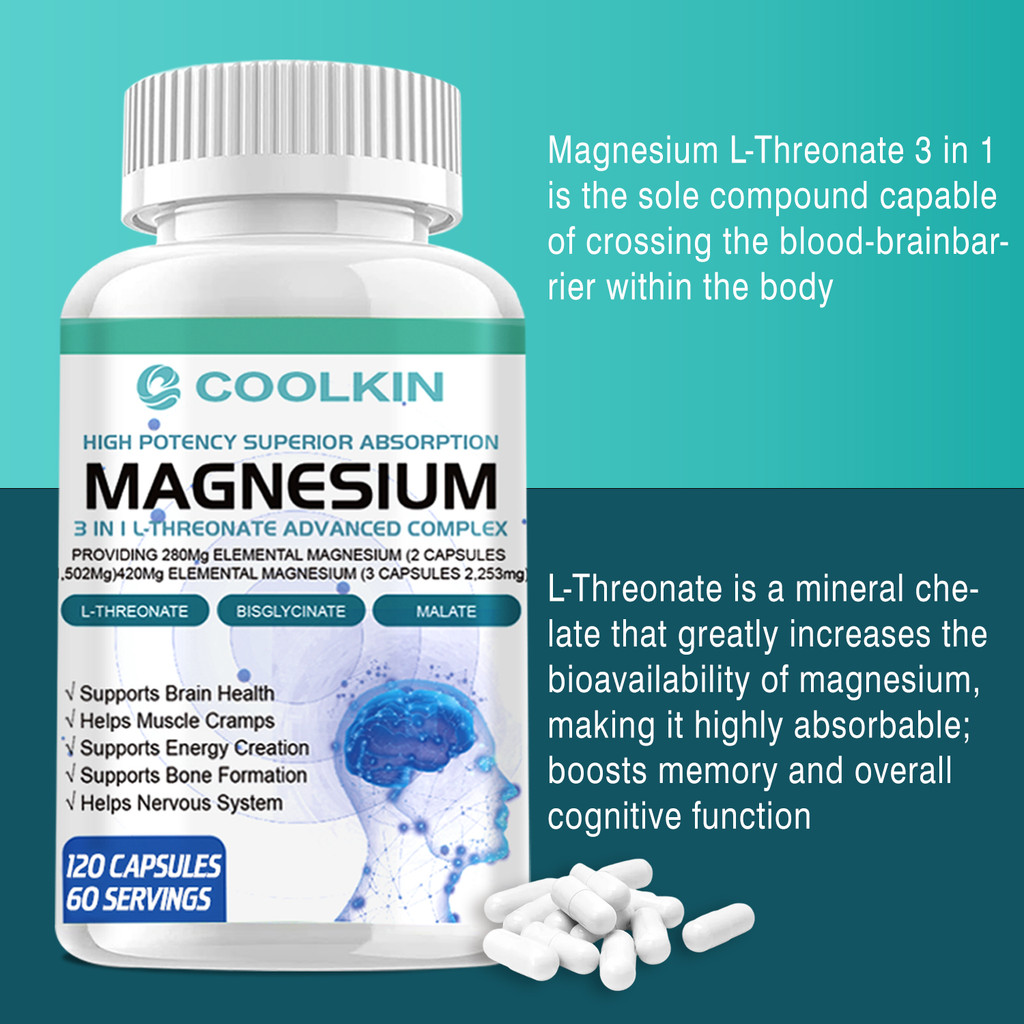Coolkin Magnesium, 3-in-1L - Threonate Complex Capsules - รองรับพลังงานและกล้ามเนื้อ รองรับคุณภาพการนอนหลับ - สูตรทางวิทยาศาสตร์