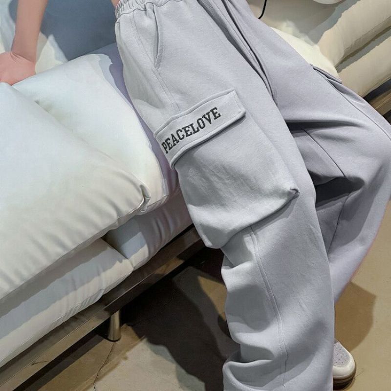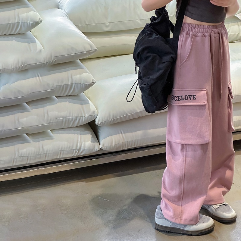 กางเกงคาร์โก้เด็กผู้หญิง กางเกงขายาวเด็กผู้หญิง สไตล์เกาหลี เอวยางยืด ทรงหลวม พิมพ์ตัวอักษร