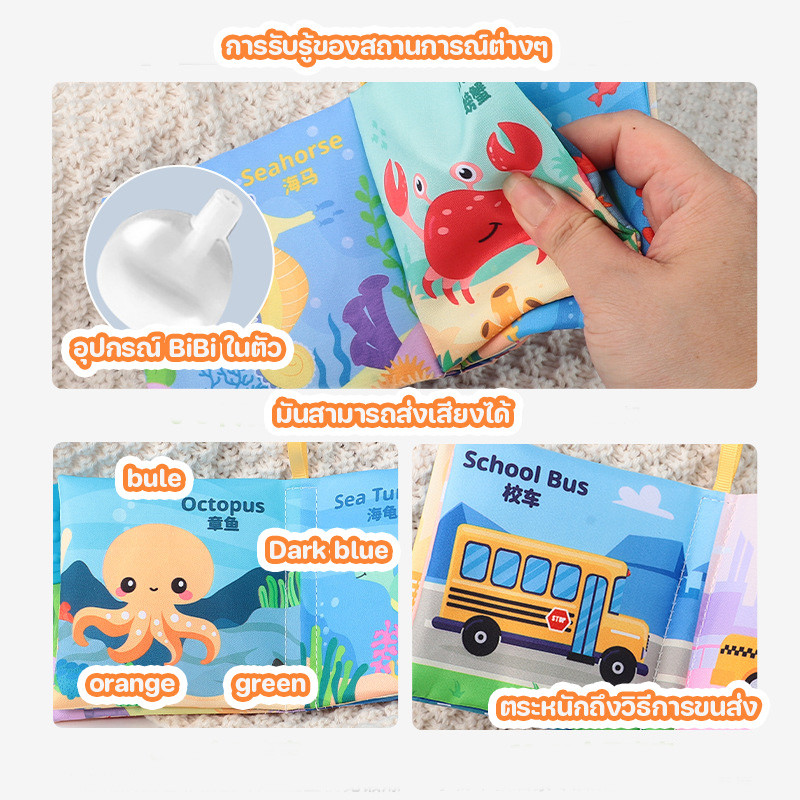 COD หนังสือผ้า 3D หนังสือผ้าเสริมพัฒนาการ เสริมพัฒนาการเด็ก ล้างทําความสะอาดได้ ไม่แตกง่าย