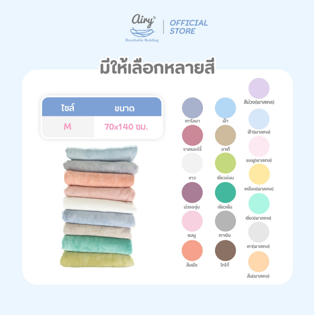 Airy ผ้าเช็ดตัวเนื้อนุ่ม ซับน้ำได้ดีเยี่ยม เนื้อละเอียด สำหรับเด็ก ไม่เป็นขุย ไม่ระคายเคืองผิว