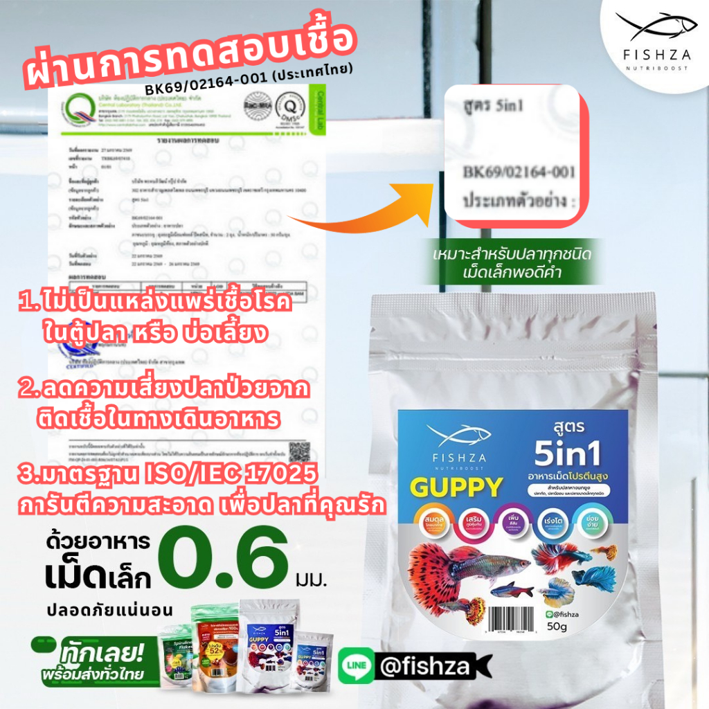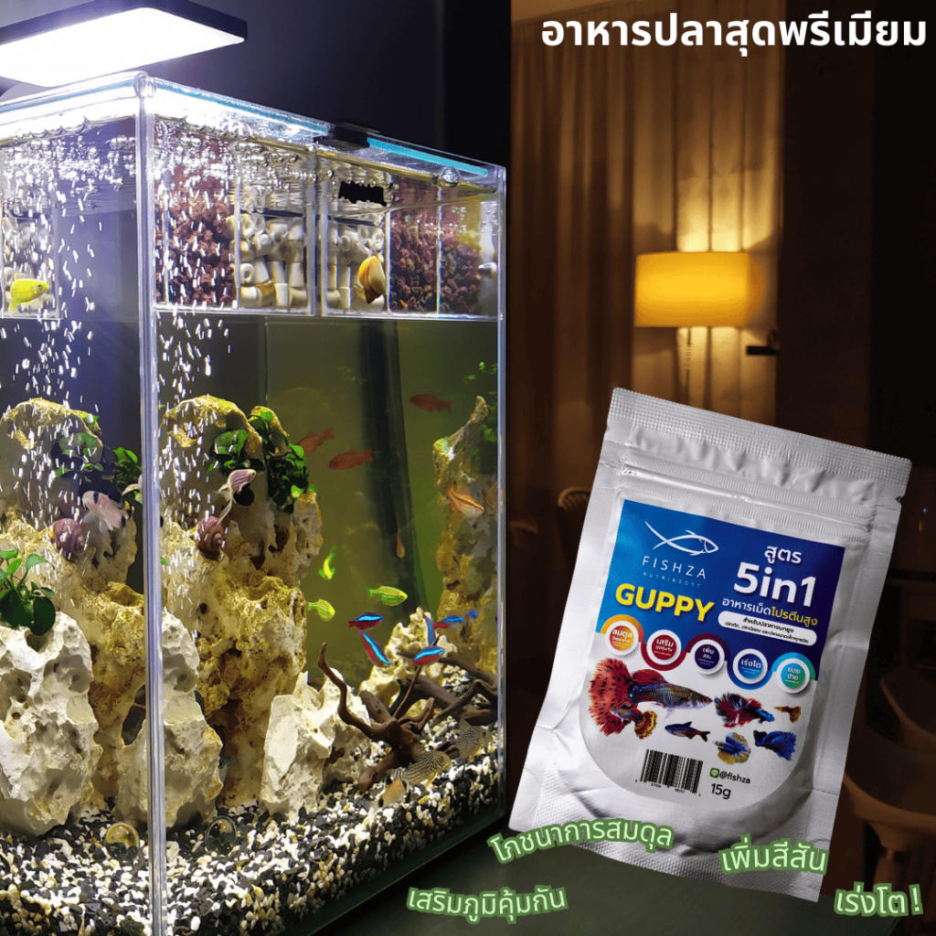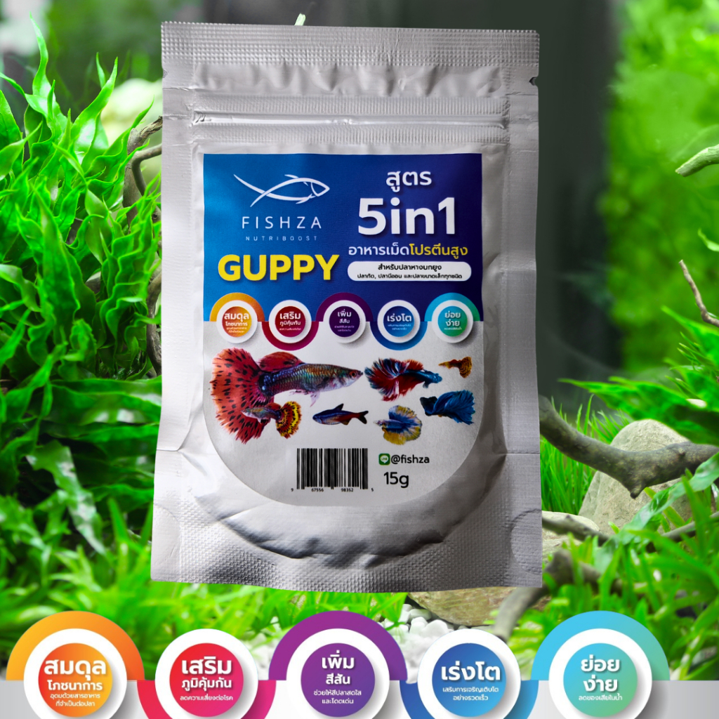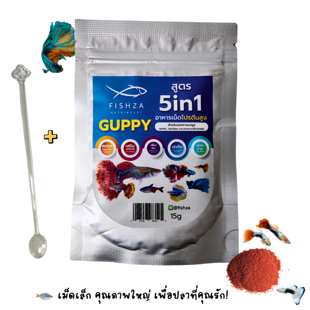 แพค 12 Fishza (ฟิสซ่า) อาหารเม็ดปลาหางนกยูงและปลาขนาดเล็ก สูตร5In1 โปรตีน วิตามิน แร่ธาตุสูง 15g