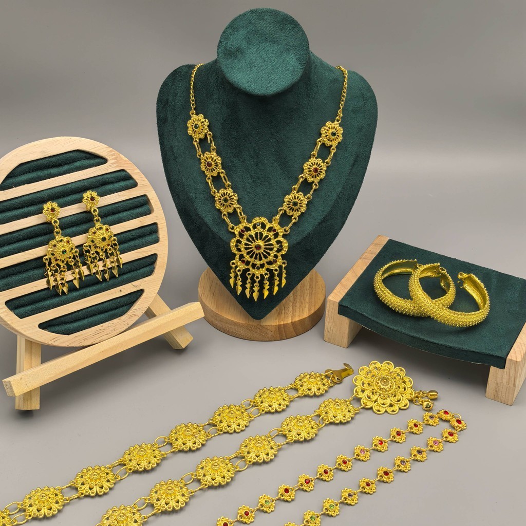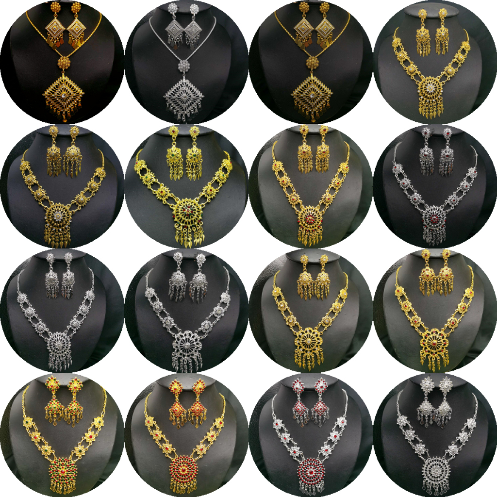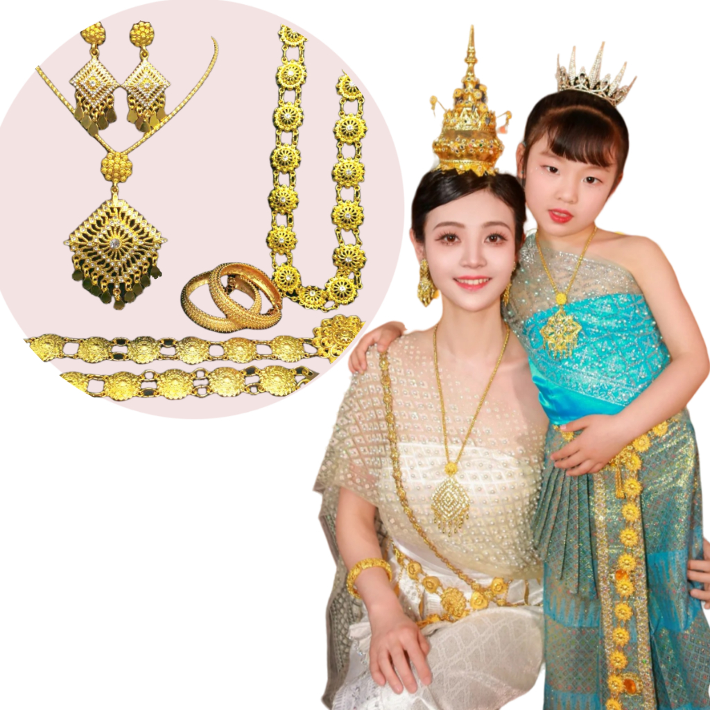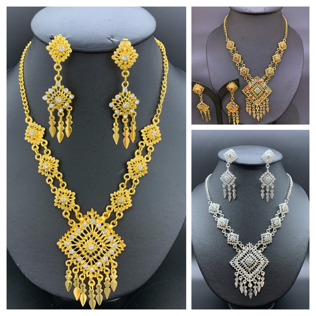 Thai jewelry set dance show wedding bride dress earring clip diamond silver gold necklace sets