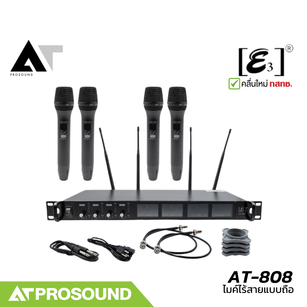 e3 AT-808 ไมค์ลอยไร้สาย 4 ตัว ย่านUHF 803-806 MHz คลื่นใหม่ กสทช รับส่งคลื่นได้ 100 เมตร AT Prosound