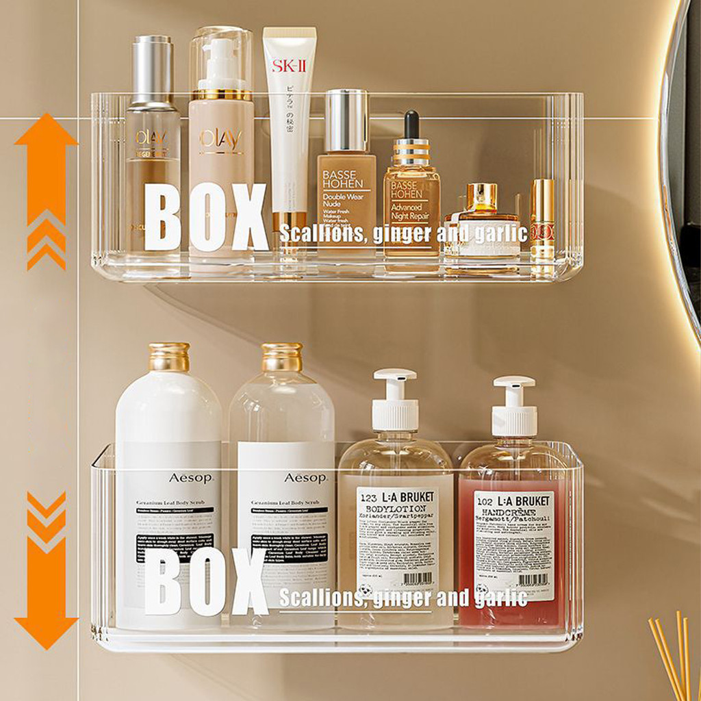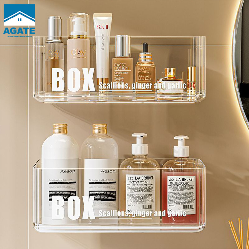ชั้นติดผนัง ชั้นวางของในห้องน้ำพลาสติก Sundries Rack ชั้นวางของในห้องน้ำติดผนัง ไม่ต้องเจาะรู รับน้ำหนักได้ดี สีโปร่งใส