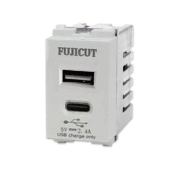 เต้ารับ USB Type A + C - 5V 2.4A USB Charger Socket ขนาด 1 ช่อง แบรนด์ Fujicut (รับประกัน 2 ปี)