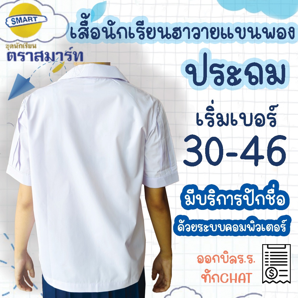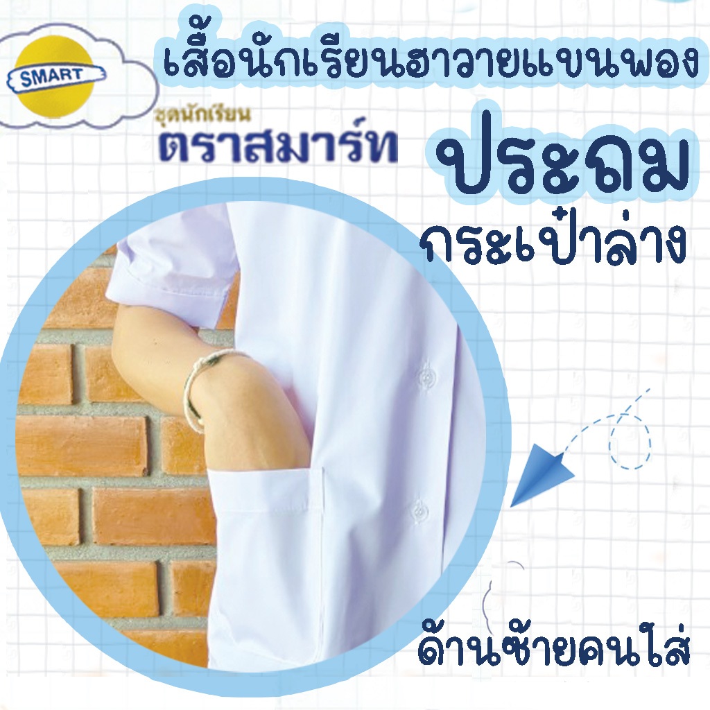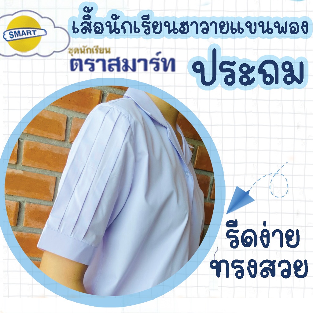 เสื้อนักเรียนฮาวายแขนพอง เสื้อนักเรียนหญิงประถม เสื้อนักเรียนคอฮาวาย แขนกระป๋อง เสื้อนักเรียนหญิง ตราสมาร์ท SMART