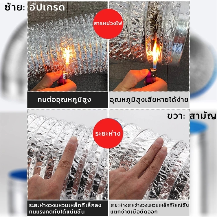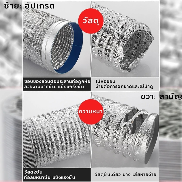 ท่อระบายอากาศยาว 2 เมตร ขนาด 4/6/8/10/12 นิ้ว ท่อฟอยล์อลูมิเนียม ท่ออลูมิเนียม ท่อยืดหยุ่น ท่ออากาศร้อน ท่ออ่อนเปลือย