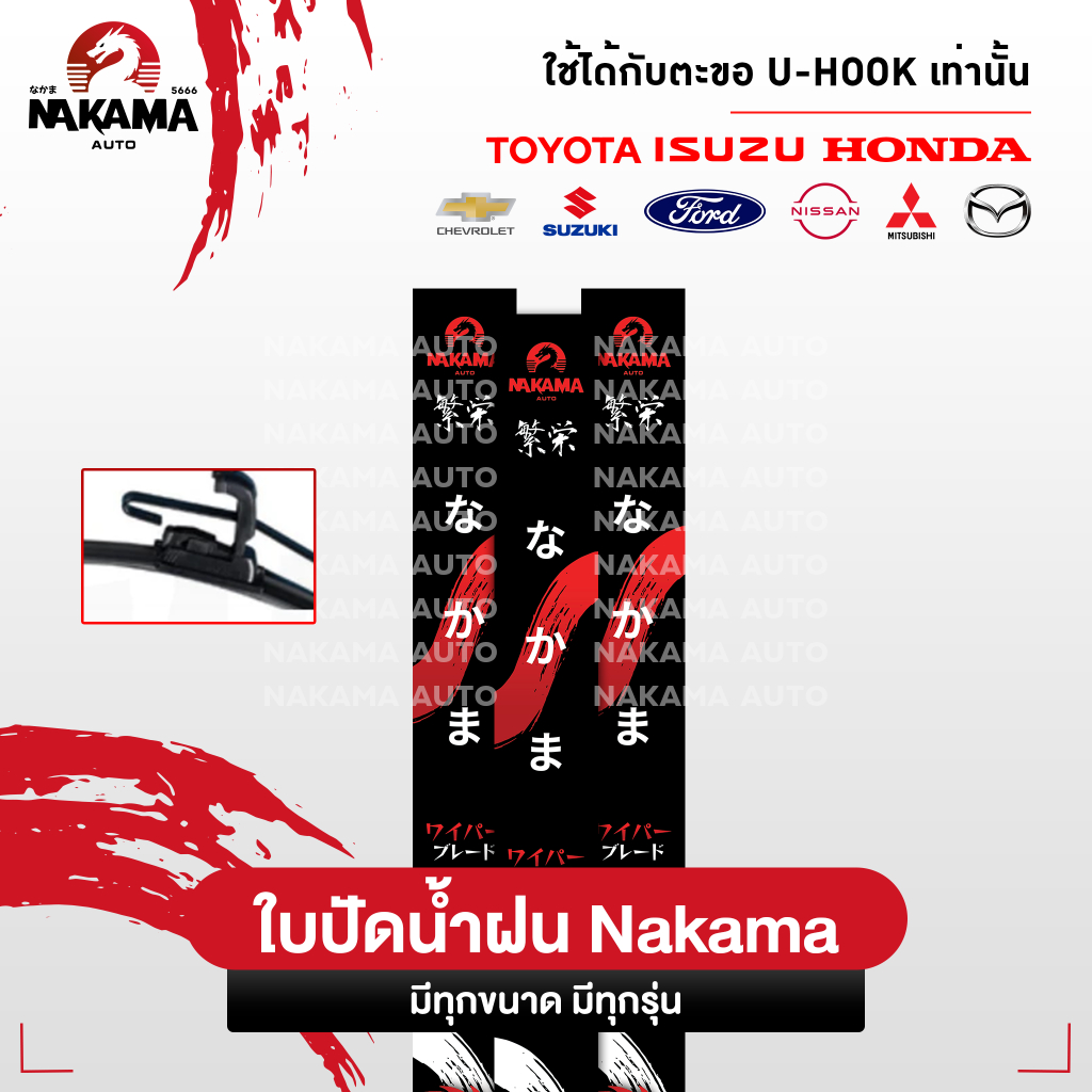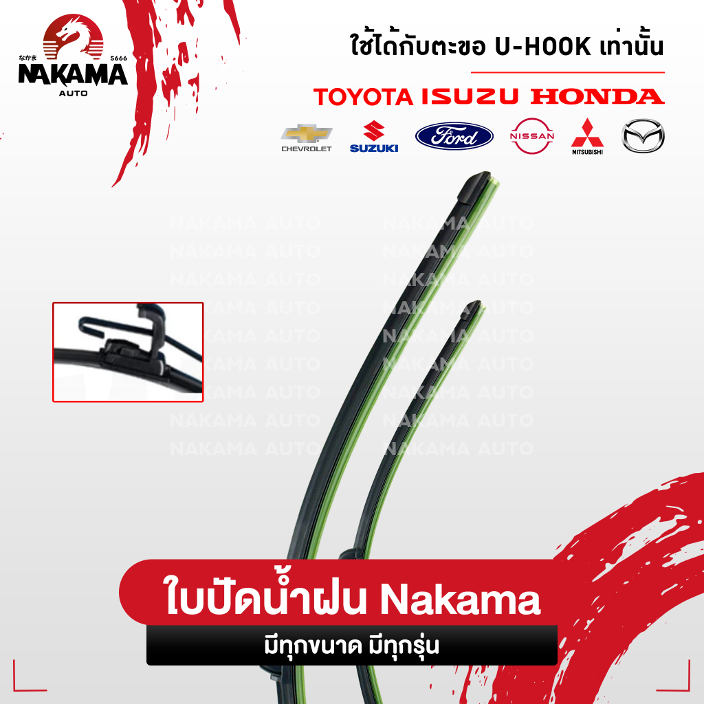 NAKAMA ใบปัดน้ำฝน ISUZU อีซูซุ ใบปัดน้ำฝนอีซูซุ ก้านปัดน้ำฝนอีซูซุราคาถูก Wiper Blade สำหรับตะขอ U-Hook เท่านั้น