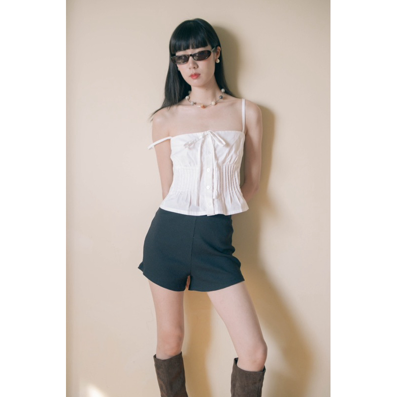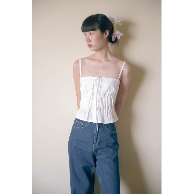 Gigi tank top เสื้อสายเดี่ยวทรงจีบระบายปลายสม๊อคหลัง (พร้อมส่งทันที) ขายดีระวังของ copy สินค้าแนะนำhj!