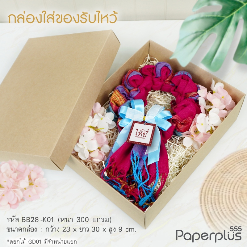 555paperplus ก.23 x ย.30 x ส.9 ซม. (ปลีก1ใบไม่พับ) กล่องของขวัญ ใส่ของรับไหว้ กล่องจัดกิ๊ฟเซ็ต (BB28/BB28W)