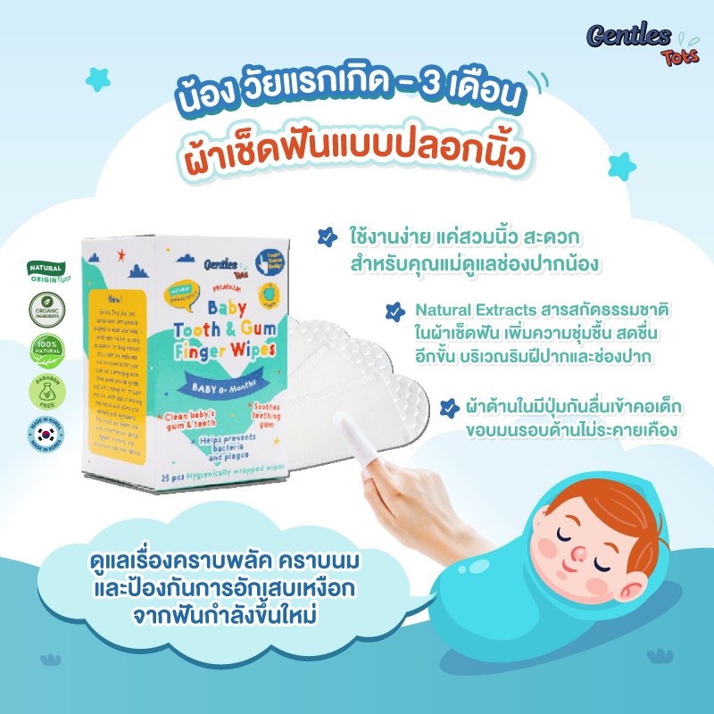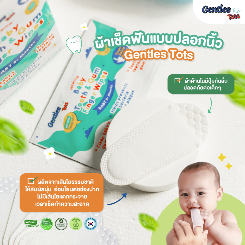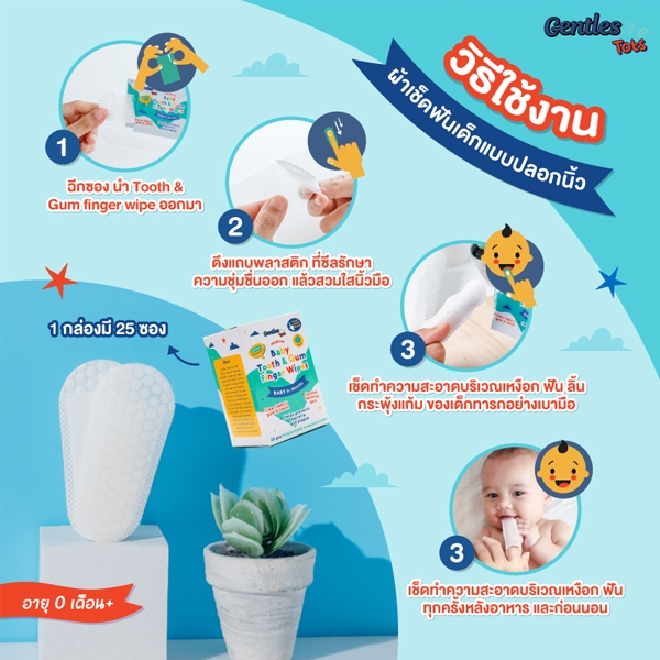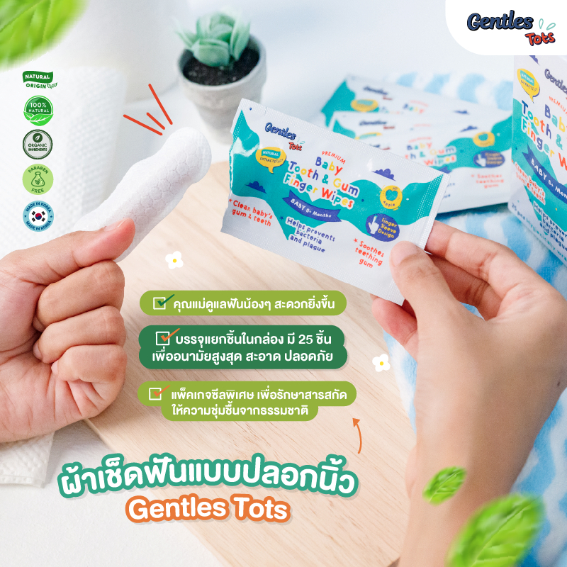 Gentles Tots - ผ้าเช็ดฟันเด็กแบบปลอกนิ้ว ทำความสะอาดเหงือก ลิ้น ฟัน กระพุ้งเเก้ม Baby Finger Wipes (1 กล่อง 25 ซอง)