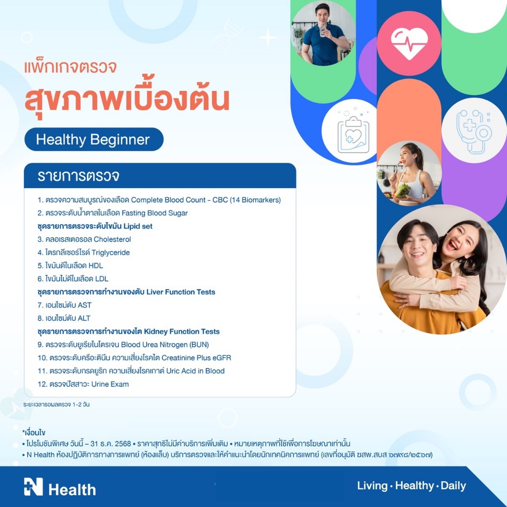 [E-Voucher] แพ็กเกจตรวจสุขภาพเบื้องต้น 12 รายการ (Healthy Beginner 12 Tests) - N Health