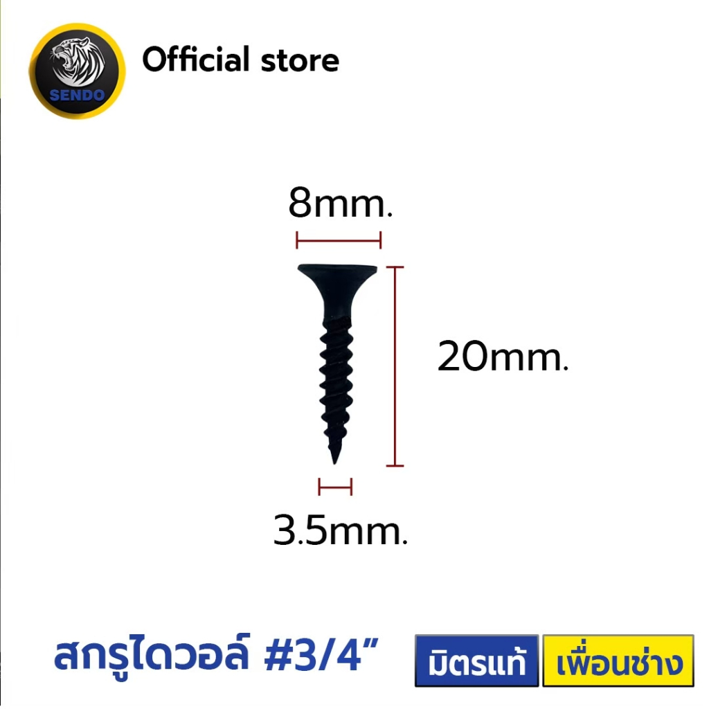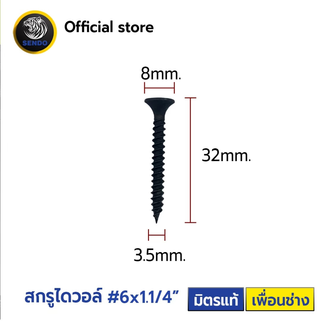 สกรูไดร์วอล สกรูยิงฝ้า สกรูยิปซั่ม สกรูดำ (ยกลัง 14 กก.) ไม่แพ็ค | Drywall Screw | Sendo เกลียวปล่อยยิปซั่มดำ #6