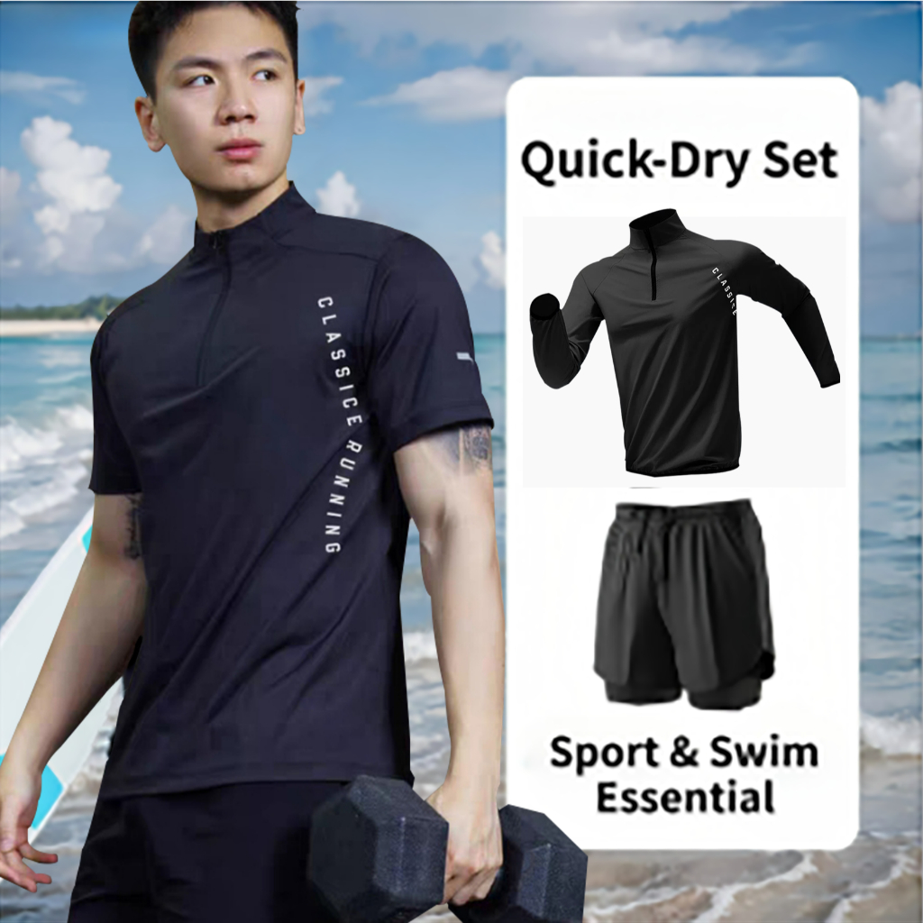 ผู้ชายแขนสั้นออกกำลังกายวิ่งสองชิ้นแห้งเร็วระบายอากาศการจัดส่งที่รวดเร็ว