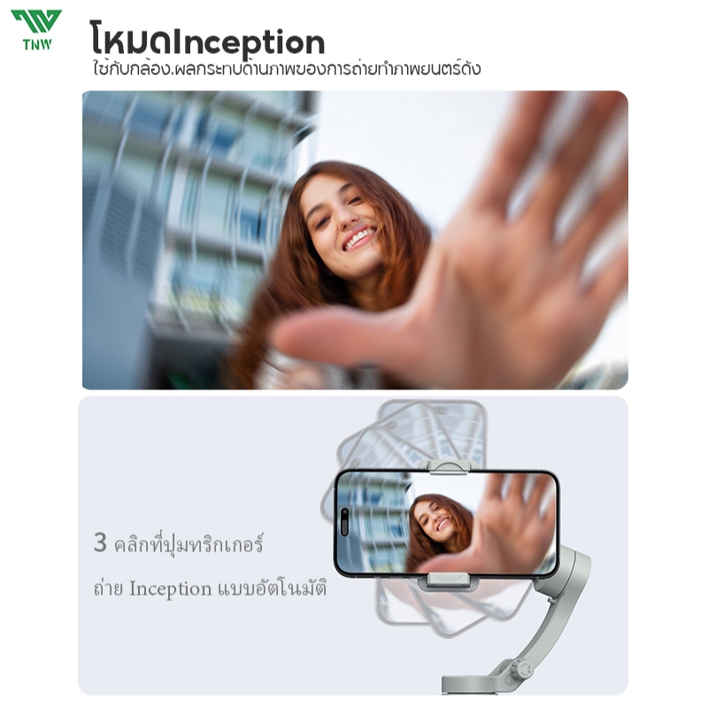 TNW M01 Gimbal กันสั่น หมุน 360° ไม้กันสั่นสำหรับสมาร์ทโฟน พับได้ ระบบกันสั่นเเบบ 3 เเกน ไฟ LED ถ่ายวิดีโอ Vlog