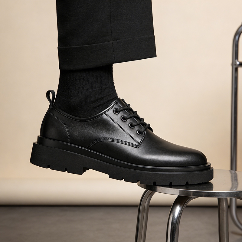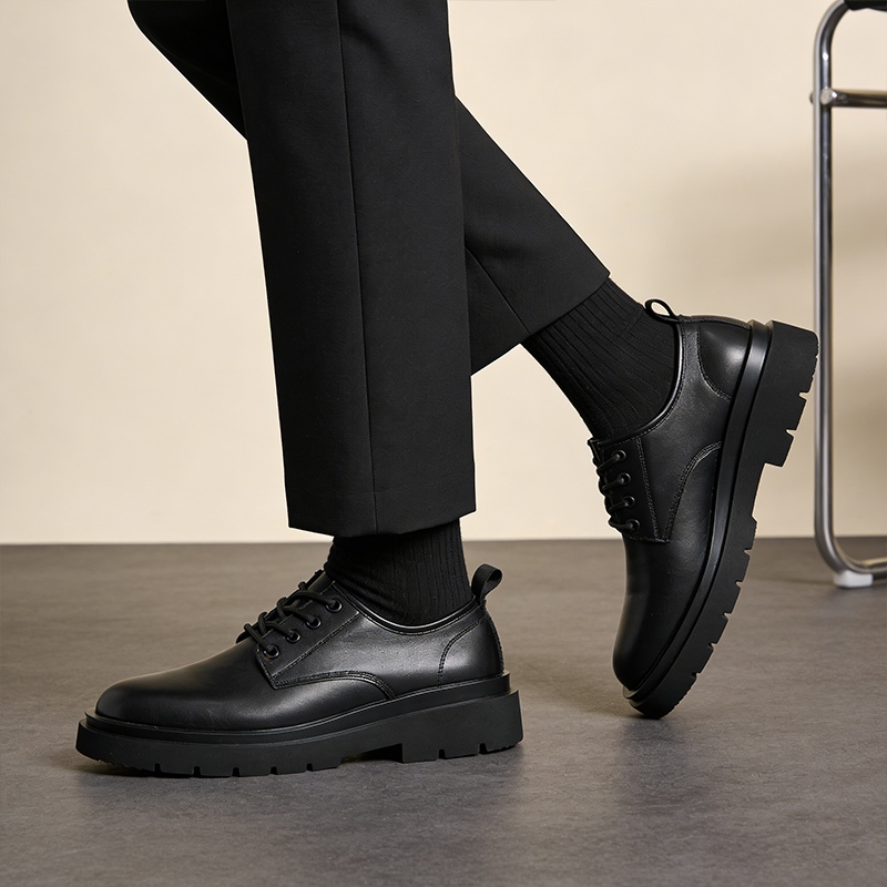 รองเท้าหนังผู้ชายทรง สีดำ สไตล์ธุรกิจสุภาพ ใส่กับสูทได้ ดูภูมิฐาน พื้นกันลื่น ใส่สบาย เหมาะสำหรับทำงานหรือโอกาสทางการ