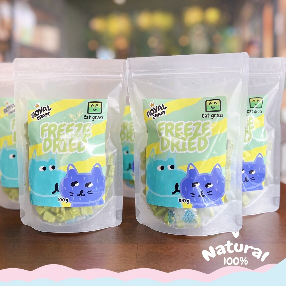 Royal Craft หญ้าแมวฟรีซดราย ขนมฟรีซดราย เกรดพรีเมียม ไม่เค็ม Freeze Dried ลดขนร่วง บำรุงขน น้องแมว