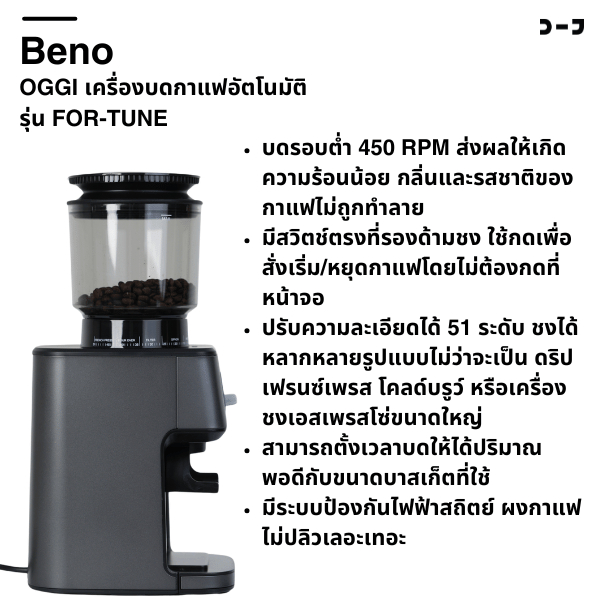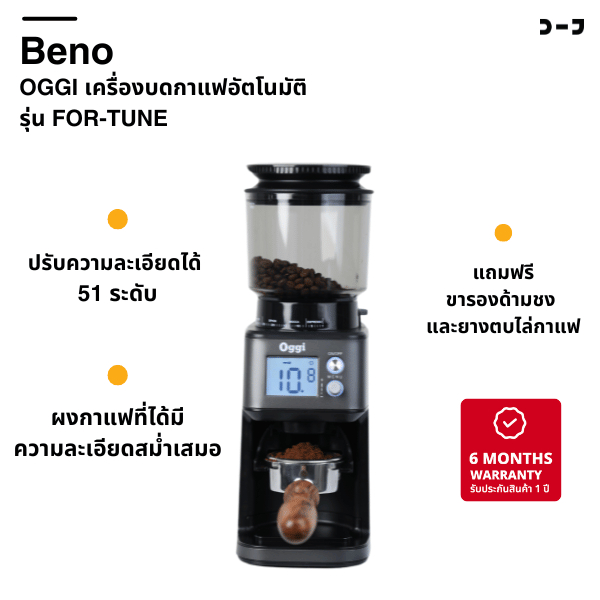 OGGI เครื่องบดกาแฟอัตโนมัติ รุ่น FOR-TUNE แถมฟรี ขารองด้ามชงและยางตบไล่กาแฟ