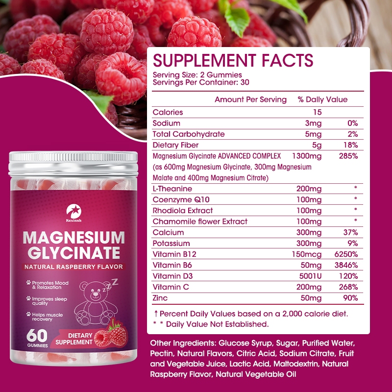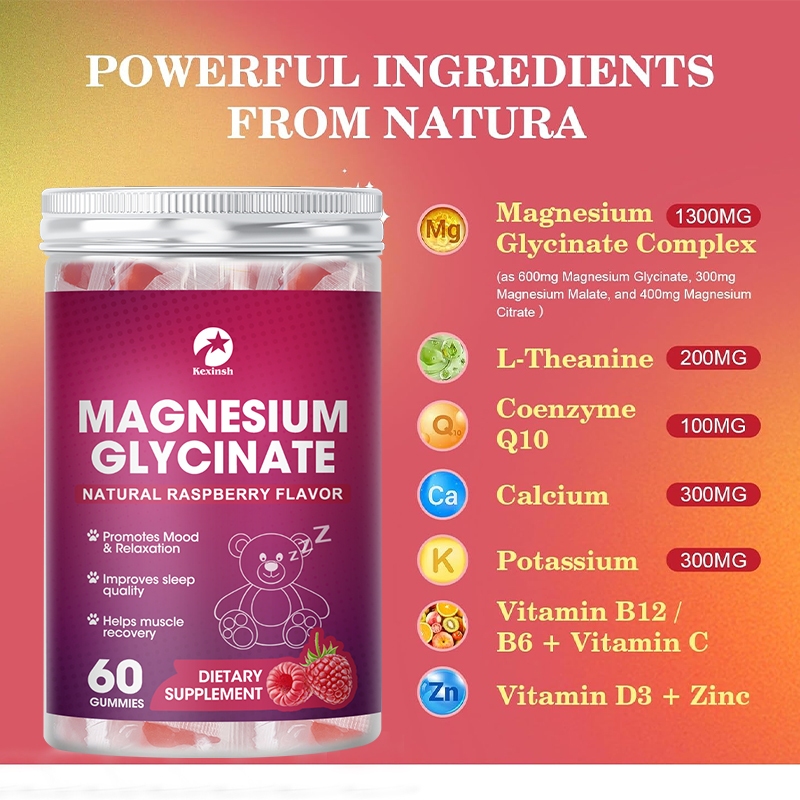 Kexinsh Magnesium Glycinate Gummies อาหารเสริมแมกนีเซียม 600Mg ซับซ้อนพร้อมโพแทสเซียม แคลเซียม โคเอ็นไซม์ Q10 วิตามิน แมกนีเซียม Malate Citrate สนับสนุนหัวใจ กล้ามเนื้อ เสริมพลังงาน