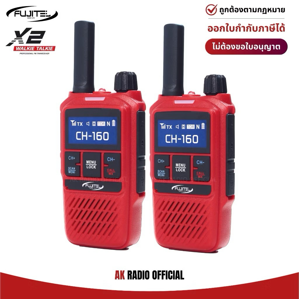 (แพคคู่) Fujitel X2 วิทยุสื่อสาร ขนาดเล็ก 0.5W รับประกัน 1 ปี ถูกกฏหมาย ไม่ต้องขอใบอนุญาต ฟรี! หูฟัง