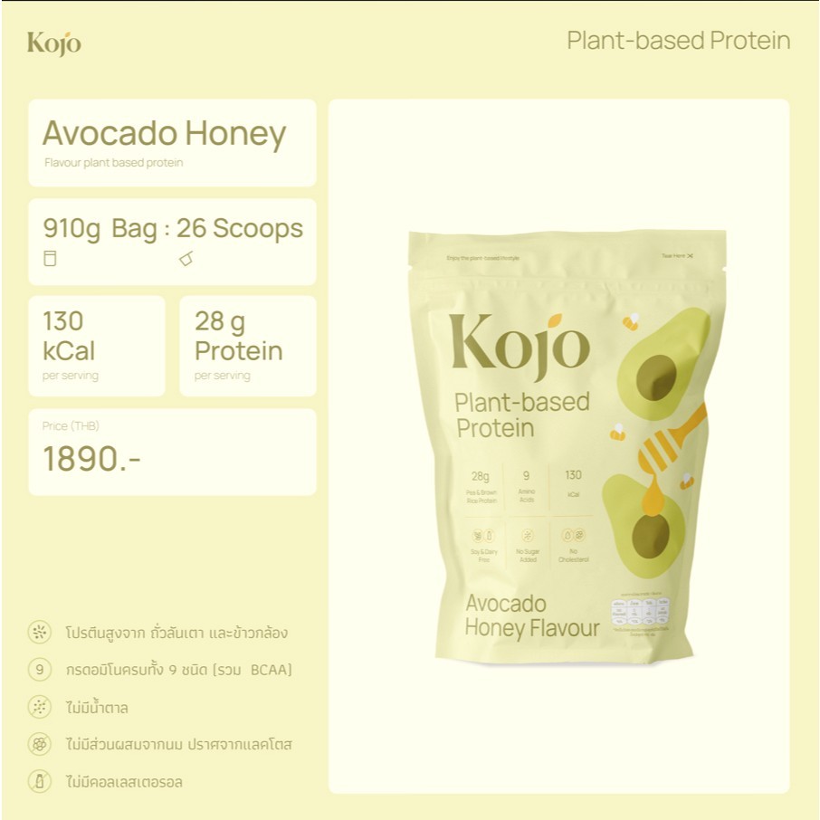 KOJO โปรตีนจากพืช รสอาโวคาโด้ ฮันนี่ 910 g. (05465)