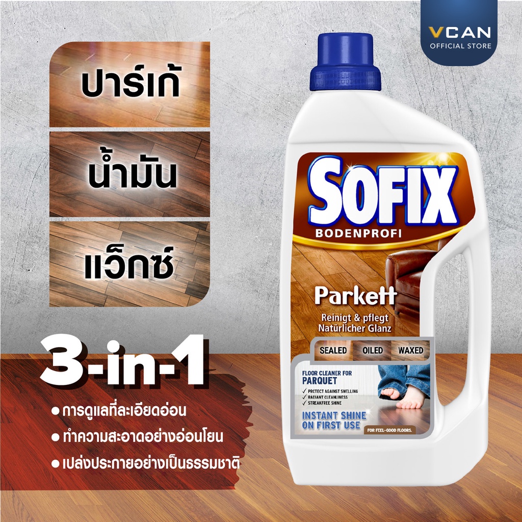 Sofix Parquet โซฟิกซ์ น้ำยาทำความสะอาด น้ำยาถูพื้นไม้ พื้นปาร์เก้ ไม้ปาร์เเก้ Wooden Floor Cleaner 1 ลิตร