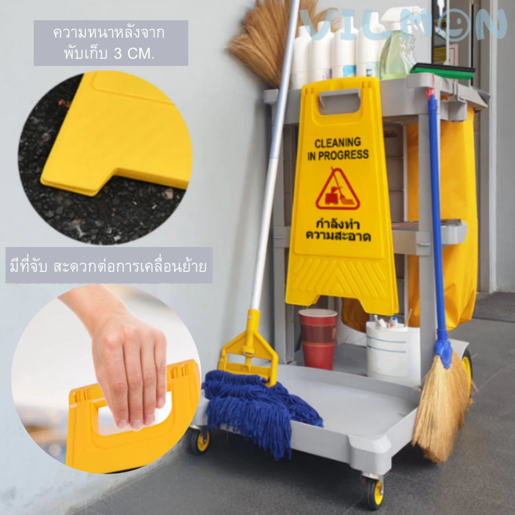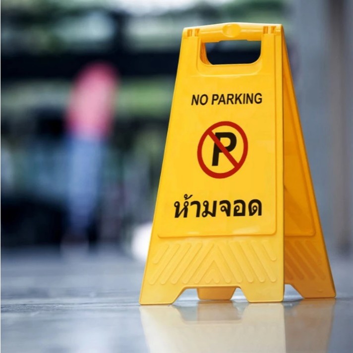 ป้ายตั้งพื้น ป้ายเตือนห้ามจอด ระวังลื่น ทำความสะอาด ป้ายจราจร ป้ายว่างเปล่า สีเหลือง พลาสติก