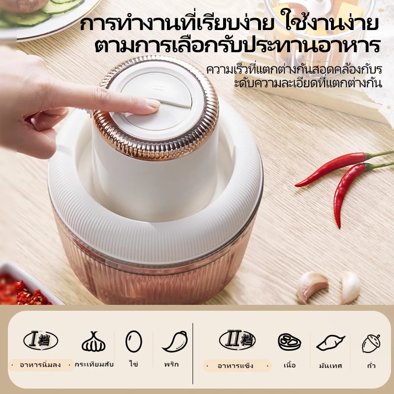 Kawu เครื่องบดเนื้อมัลติฟังก์ชั่น 2L+0.3L เนื้อสับ, กระเทียม, พริกไทย, ผักปิดเสียงทําความสะอาดง่าย