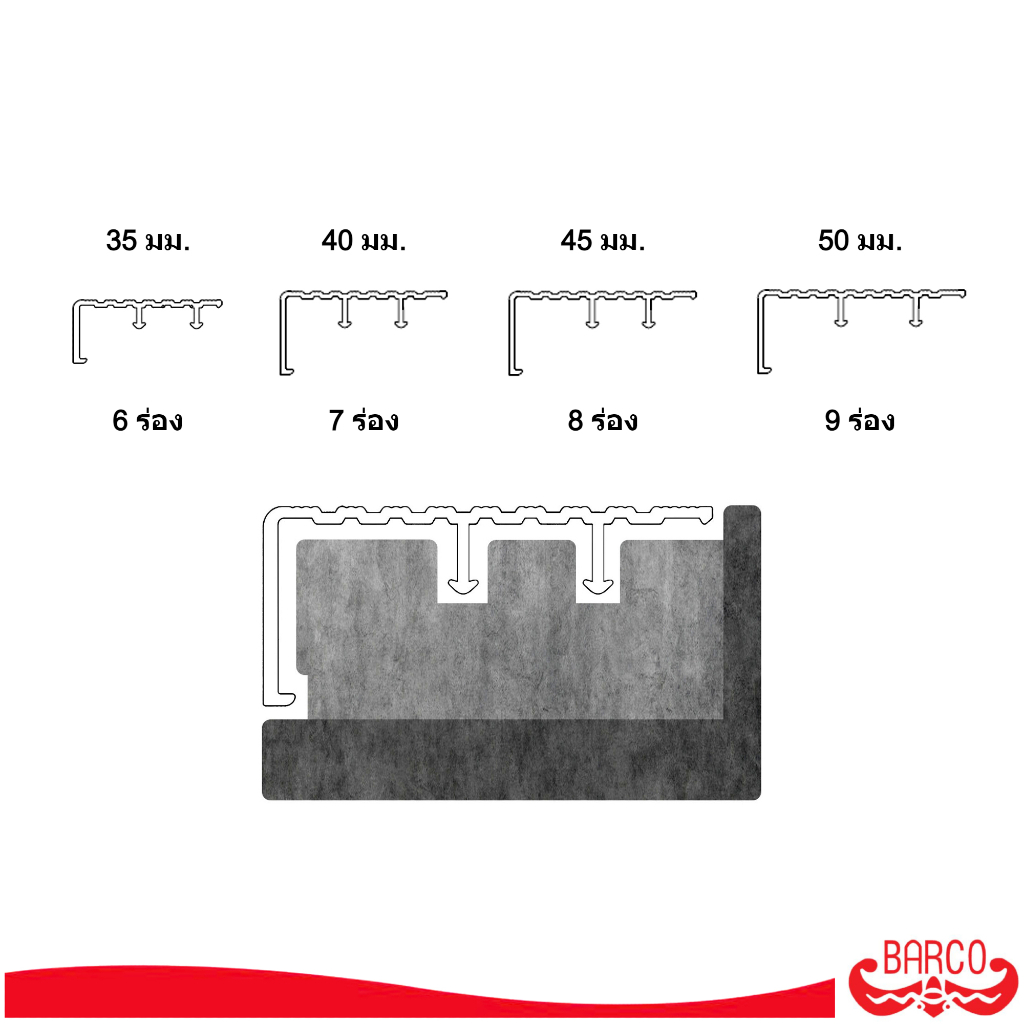 BARCO จมูกบันไดอลูมิเนียม มีขา ยาว 200 ซม.