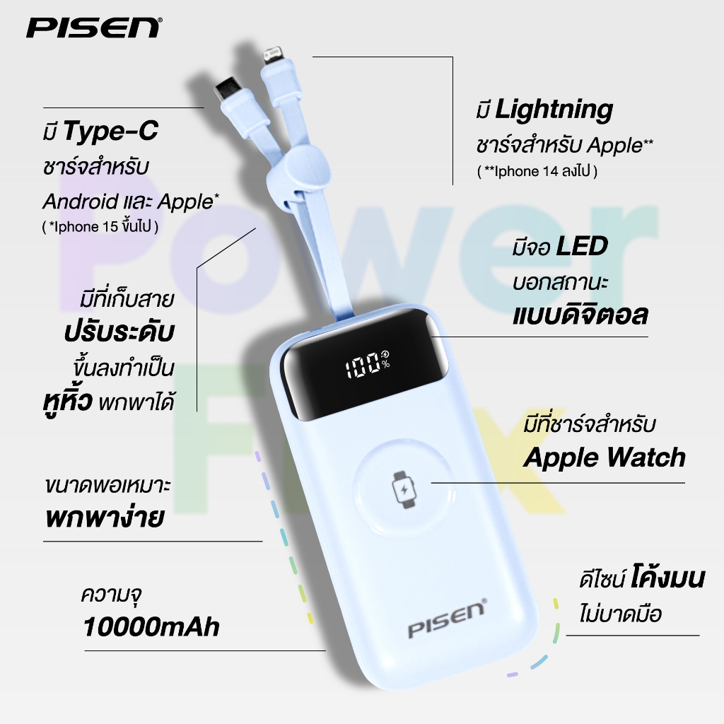 Pisen (TP-D104) พาวเวอร์แบงค์ชาร์จเร็ว 3-in-1 22.5w 10000mAh พร้อมแท่นชาร์จ Apple Watch