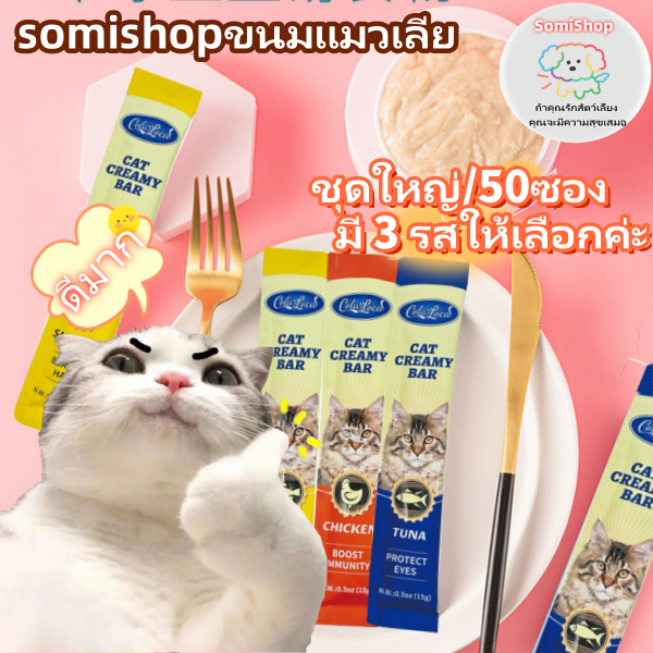 [โซเดียมต่ำ] ขนมแมวเลีย ขนาด ขนมแมว 15 กรัม (แพ็ค 50 ซอง)
