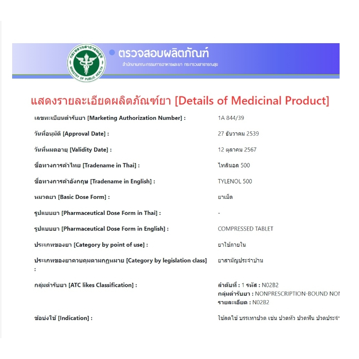 !Tylenol Paracetamol 500mg. ไทลินอล พาราเซตามอล 500 มิลลิกรัม ยาสามัญประจำบ้าน