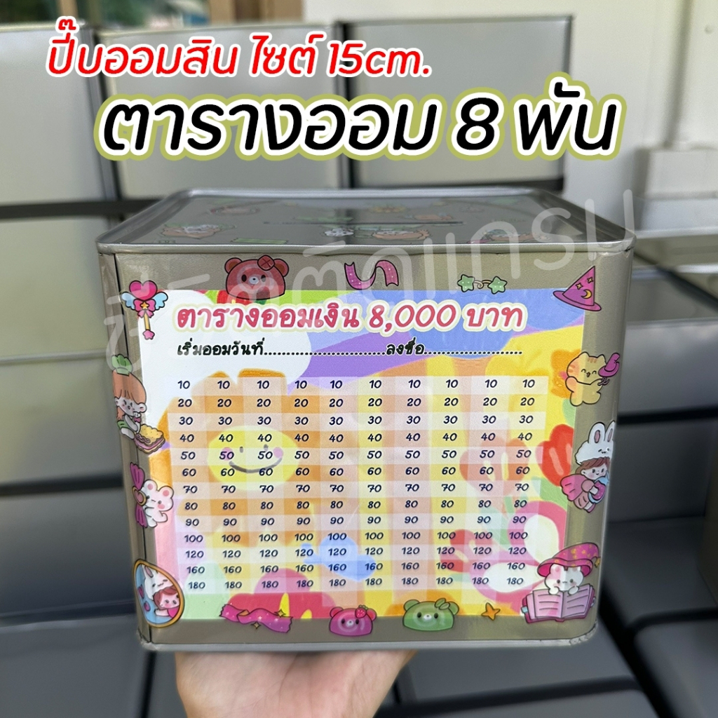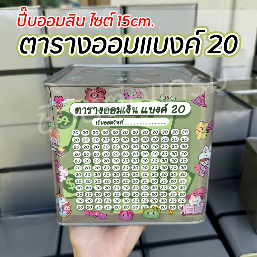 กระปุกออมสินปี๊บกลมแถมฟรีตารางออมเงิน+สติกเกอร์ตกแต่ง ปี๊บออมสินกันน้ำ รีดสติกเกอร์ทั้งใบ มีกันสนิม ขนาด 15 CM, 23 CM