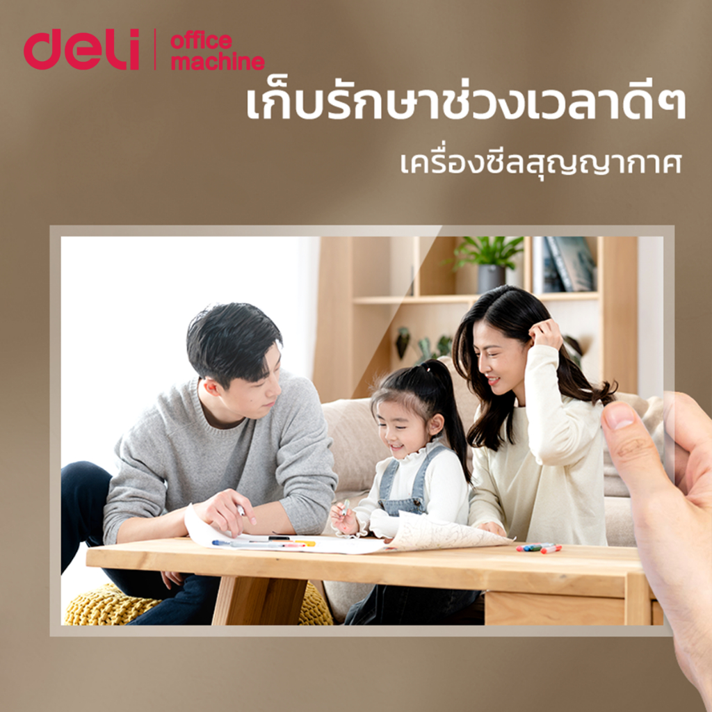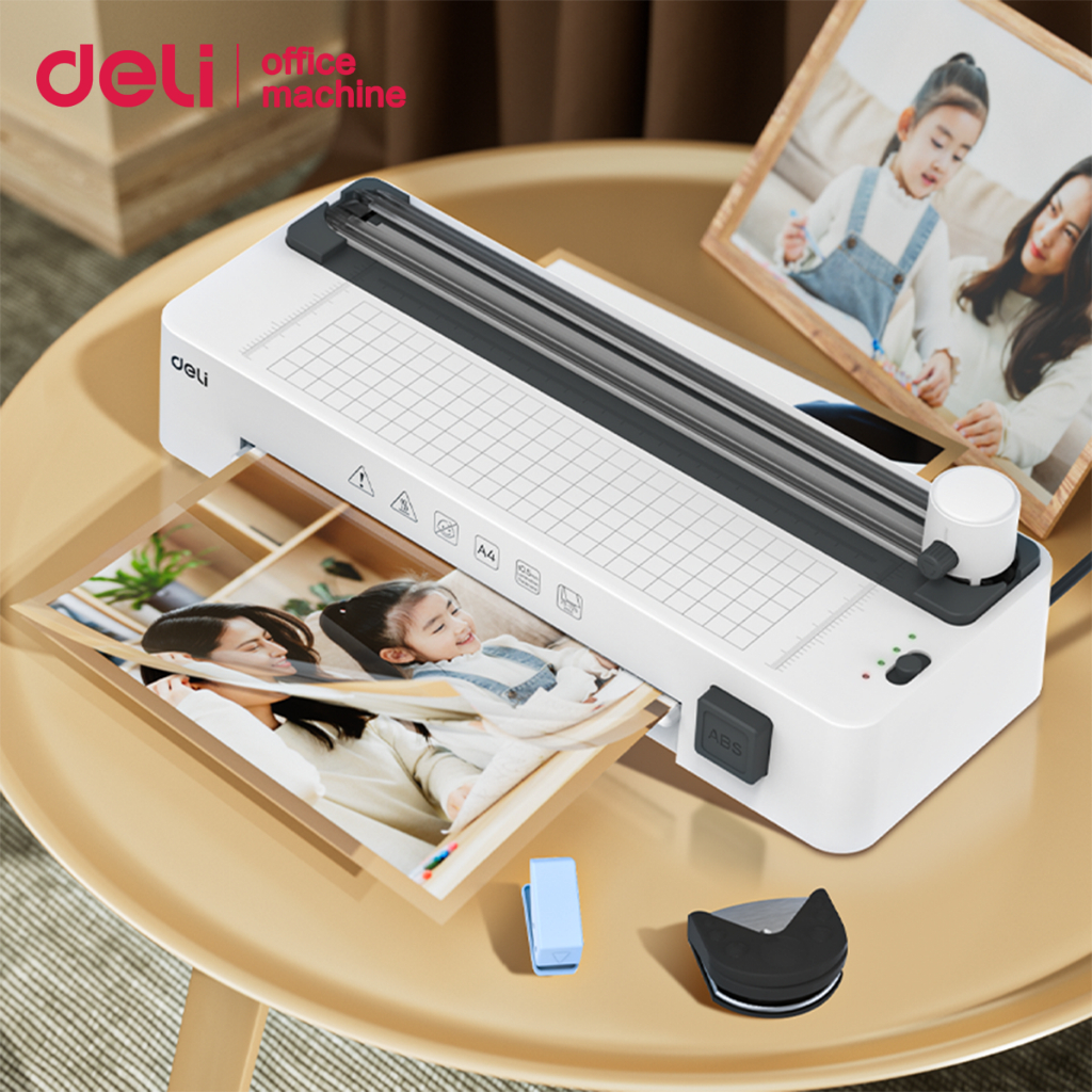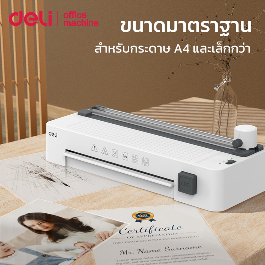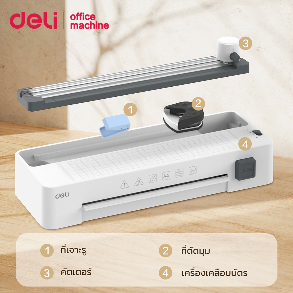 [ฟรีที่ตัดมุม] Deli เครื่องเคลือบเอกสาร A4 3in1 260มม/นาที มีแท่นตัดกระดาษ ที่เจาะรู Laminator