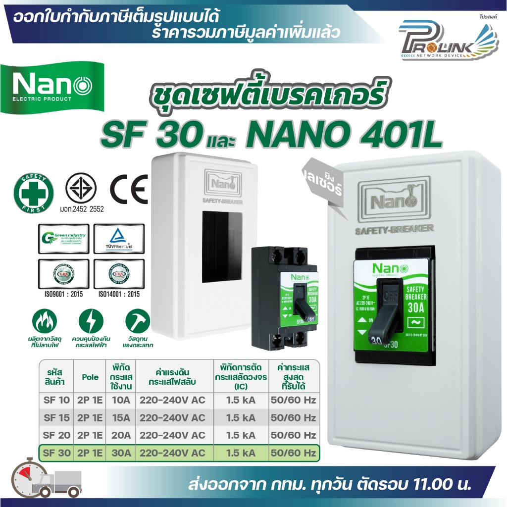 NANO ชุดเซฟตี้ เบรกเกอร์ รุ่น SF 10A 15A 20A 30A และ กล่องเบรกเกอร์เลเซอร์ 401L