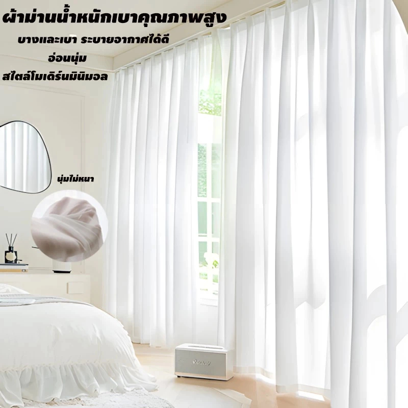 ซื้อ 1 แถม 1 ผ้าม่านโปร่งแสง ผ้าม่านประตู สไตล์มินิมอล ม่านกรองแสง ผ้าบังตาสีขาว สไตล์มินิมอล