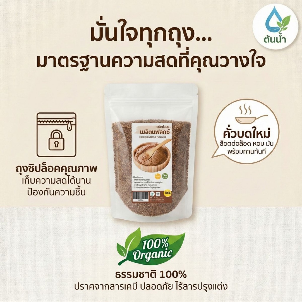 เมล็ดแฟลกซ์คั่วบดละเอียด 100 กรัม เมล็ดแฟล็กซ์สีน้ำตาลบด FlaxSeed พร้อมทาน