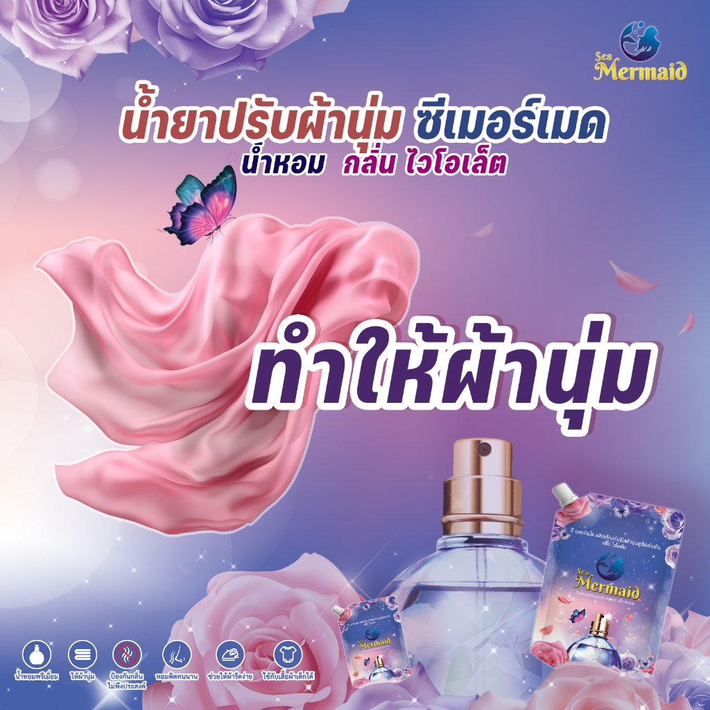 (ลดใหญ่ท้ายปี) Sea Mermaid น้ำยาปรับผ้านุ่มสูตรเข้มข้น ซีเมอร์เมด 4800 มล.X4ถุง กลิ่นViolet