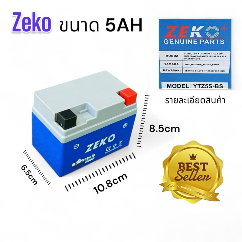 zeko สำหรับมอเตอร์ไซค์ ไฟแรง อึด ค่า cca สูง มี3ขนาด YTZ5S - BS YTZ56S - BS YTZ7S - BS