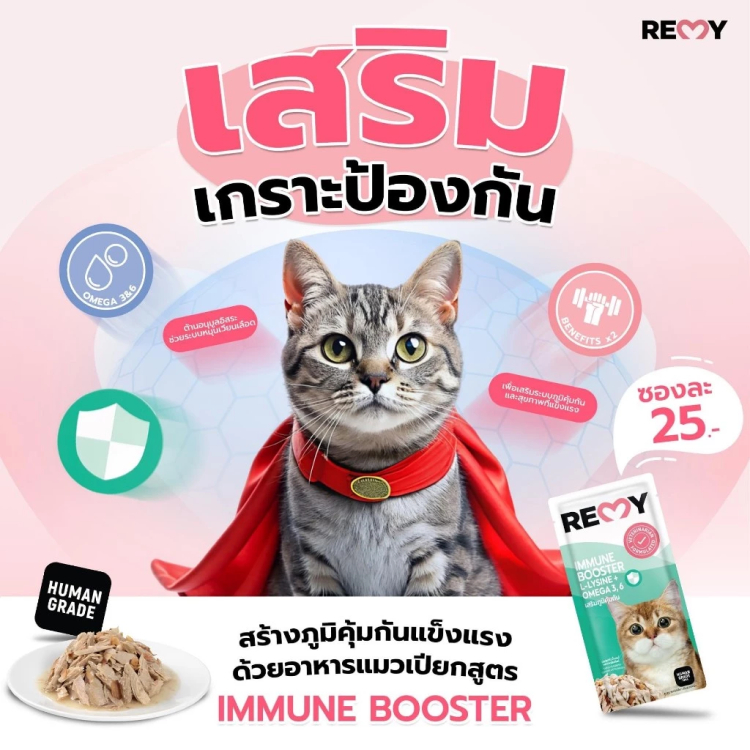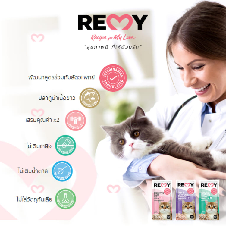 [ยกลังสุดคุ้ม] REMY อาหารเปียกแมว เรมี่ อาหารแมว Human Grade ไม่เติมเกลือ บำรุงขน / ระบบย่อย / เสริมภูมิ 70 กรัม 48 ซอง
