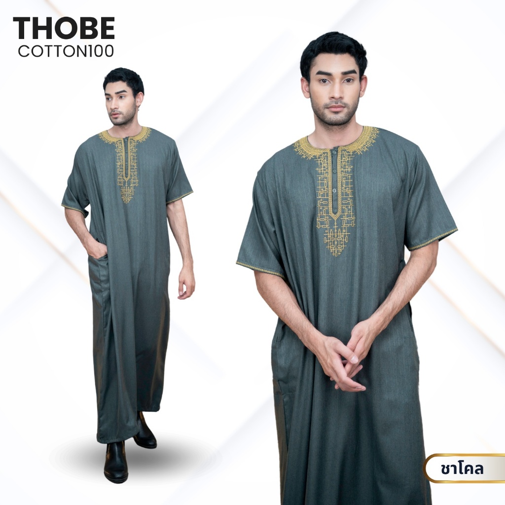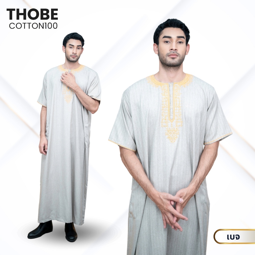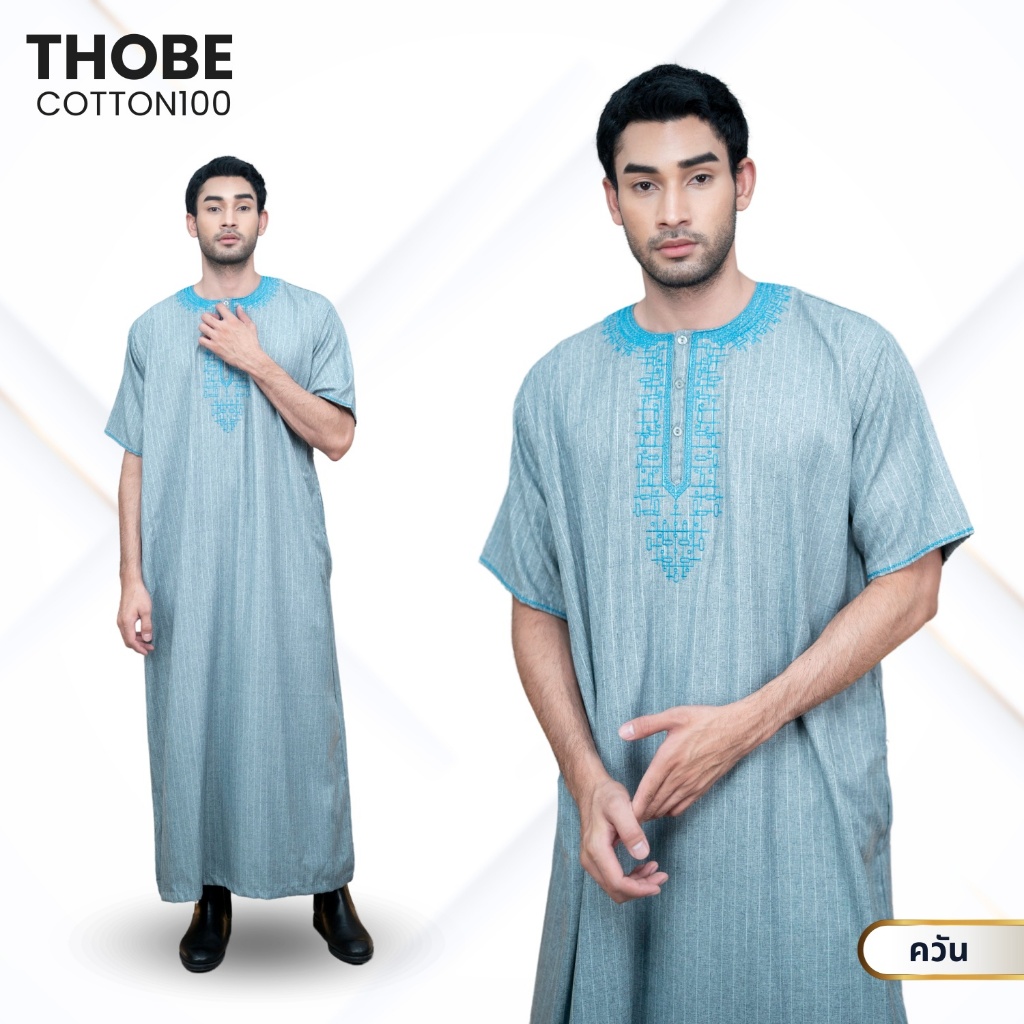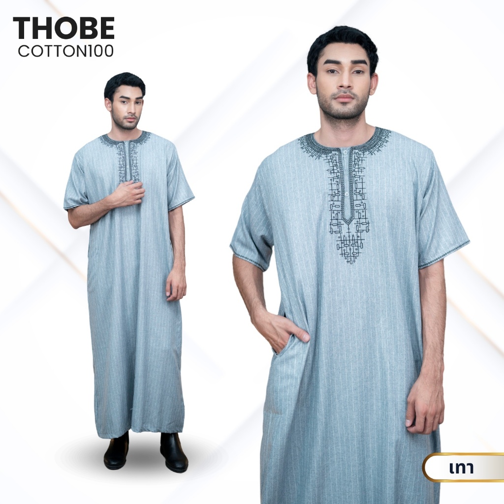 โต๊ปผู้ชายแขนสั้น ลายทาง ผ้าคอตตอน งานปักสุดหรู ตัดเย็บอย่างมีคุณภาพ สินค้านำเข้า AF05วาริสมุสลิม