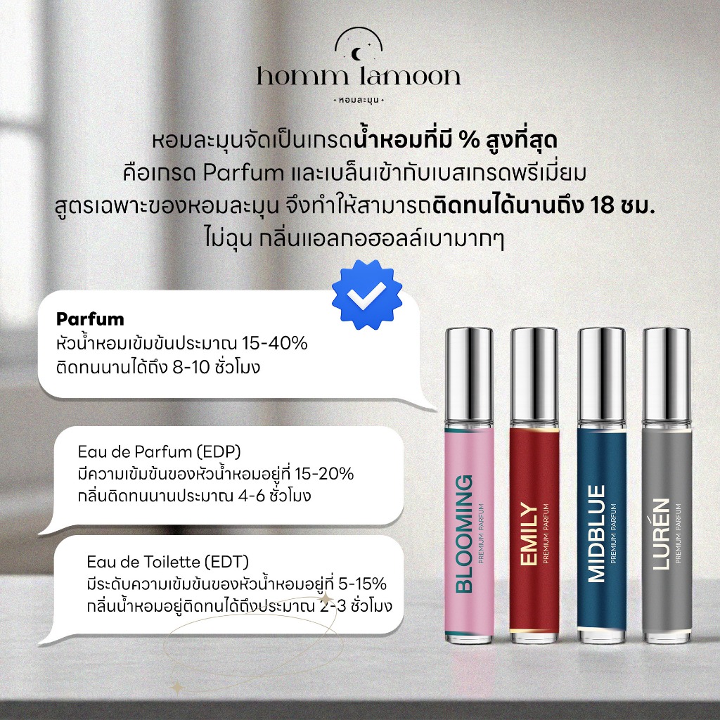 [ฉีดน้อยหอมนาน] น้ำหอมสูตรพรีเมี่ยม ติดทนนานมาก น้ำหอมผู้หญิง น้ำหอมผู้ชาย - หอมละมุน - Homm Lamoon