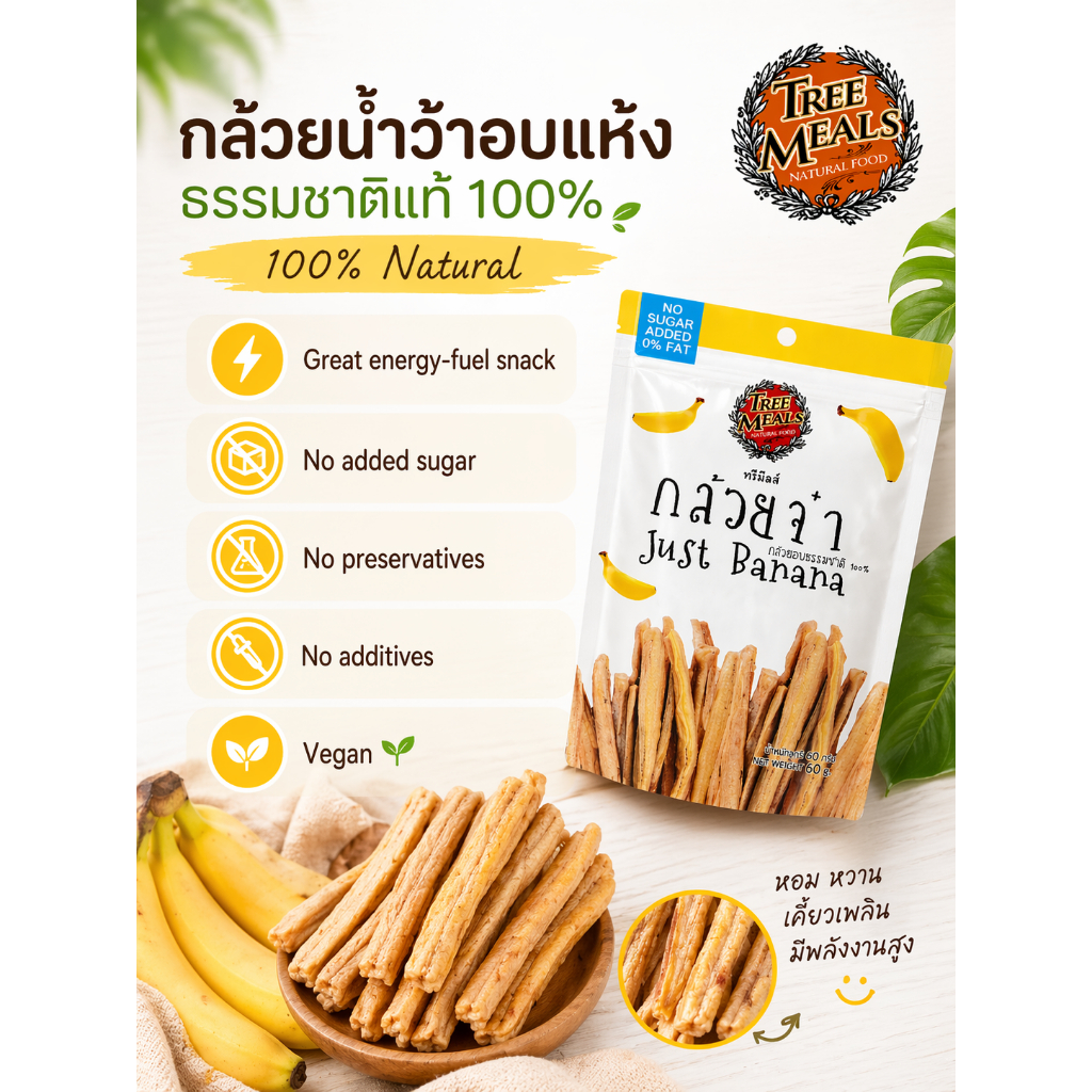 [1 ซอง] Treemeals กล้วยจ๋า กล้วยน้ำว้าอบ ขนาด 60 กรัม (GG001)